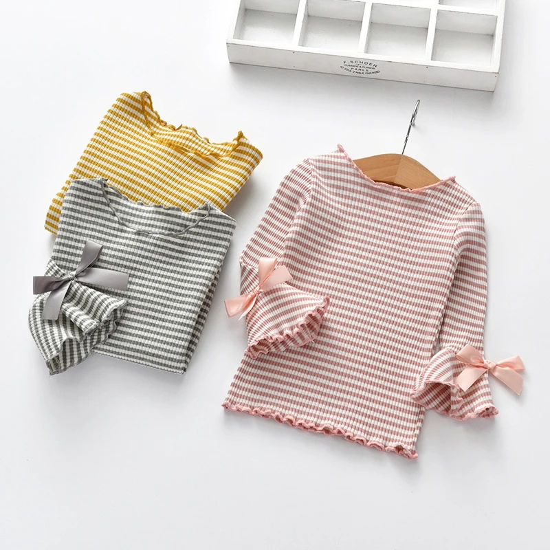 Bargain Nouveau automne bébé enfants fille à manches longues Flare T-Shirts pull rayé imprimé hauts T-Shirt