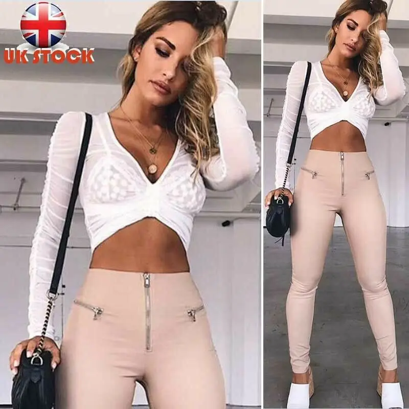 Cashback Nouveau Sexy col en V profond femmes pure fille maille filet de poisson à manches longues col de to